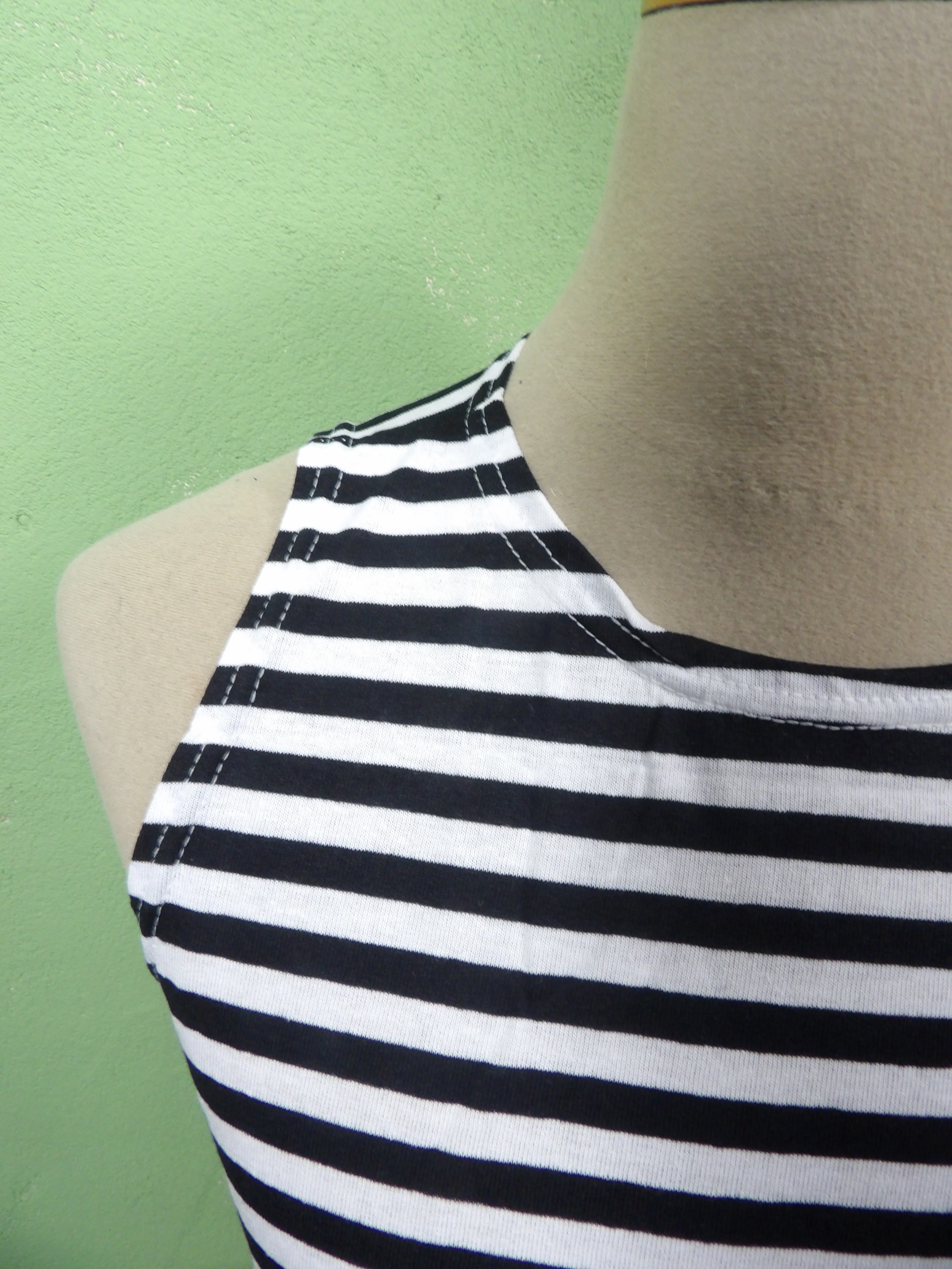 Machine wash cold/30°C, inside out, avoid high heat tumble to preserve stripes/shape.
